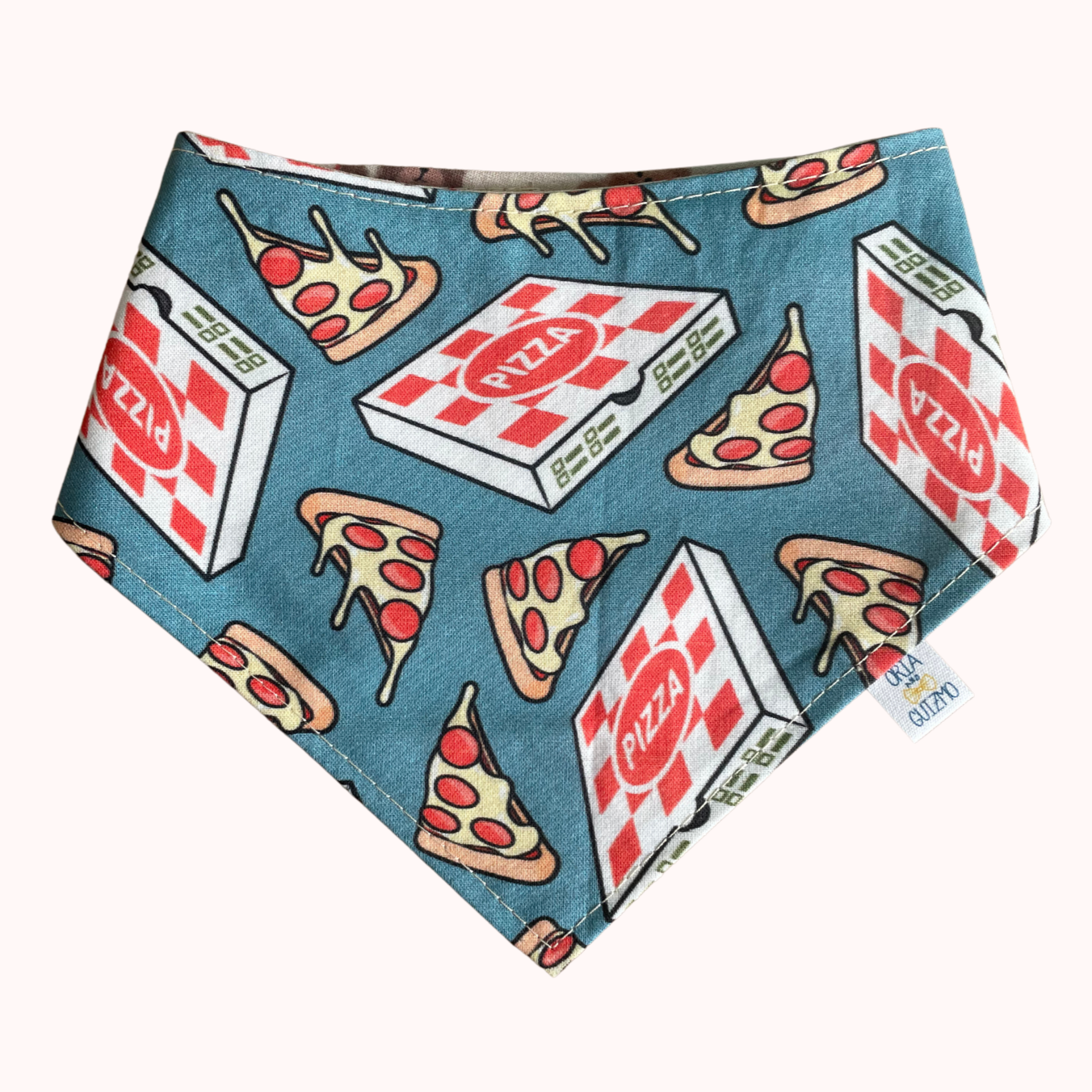 Notre modèle de bandana réversible "Nounours x Pizza" pour sublimer votre toutou.